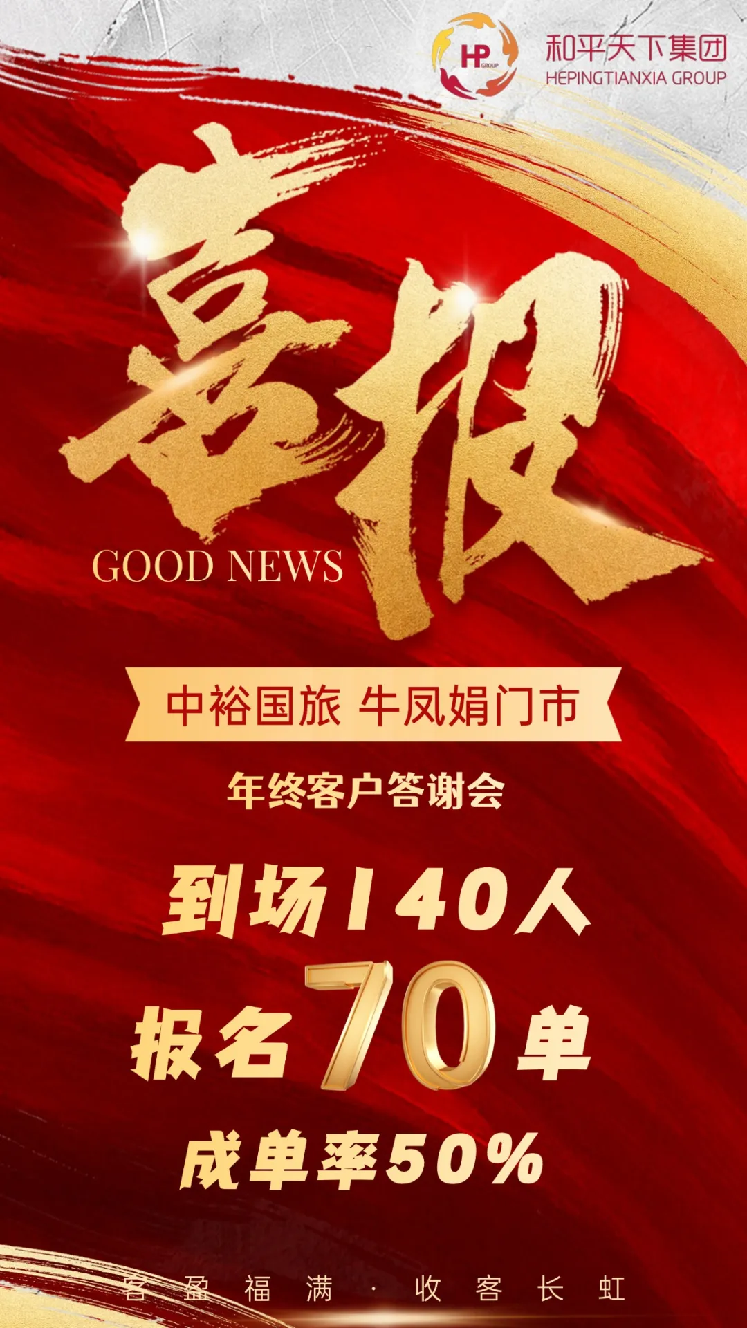 2025年12月24日,和平天下集团·中裕国旅牛凤娟店长门市年终客户答谢会在新发地长顺食府精彩开启。牛凤娟店长和门店的工作人员在答谢会现场提供热情周到的服务、以主动专业的态度、礼貌温暖的言语与客户交流,让宾客感受到家一般的温暖。