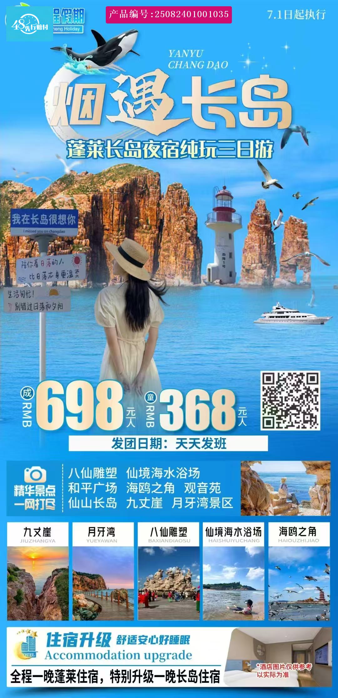 //餐:无 [p]//住宿:蓬莱 [br] [/p] [p]早指定赴人间仙境——蓬莱。下午抵蓬莱。 [br] [/p] [p]【八仙雕塑】游览蓬莱的标志性建筑—拍照留念。该雕塑由中央工艺美术学院设计,298块八仙石雕砌而成,八位神仙栩栩如生。 [br] [/p] [p]【和平广场】世界“和平颂”举办地,拥有世界上独一无二的“和平锣。” [br] [/p] [p]【畅玩仙境海水浴场】赶海、拾贝、踏浪 [br] [/p] [p]【海鸥之角】成千上万只海鸥聚集在蓬莱海边附近觅食、嬉戏,包括红嘴鸥、灰背鸥、黑头鸥等多个品种。随着当地生态环境不断提升改善,在海滨越冬的海鸥逐年增多,成为了人们观赏海鸥的打卡胜地。 [br] [/p] [p]之后入住酒店。 [br] [/p] [p]蓬莱海水浴场自由活动漫步在细白如丝的沙滩上,置身于湛蓝清澈底的海水中,让您乐此不疲! [br] [/p]