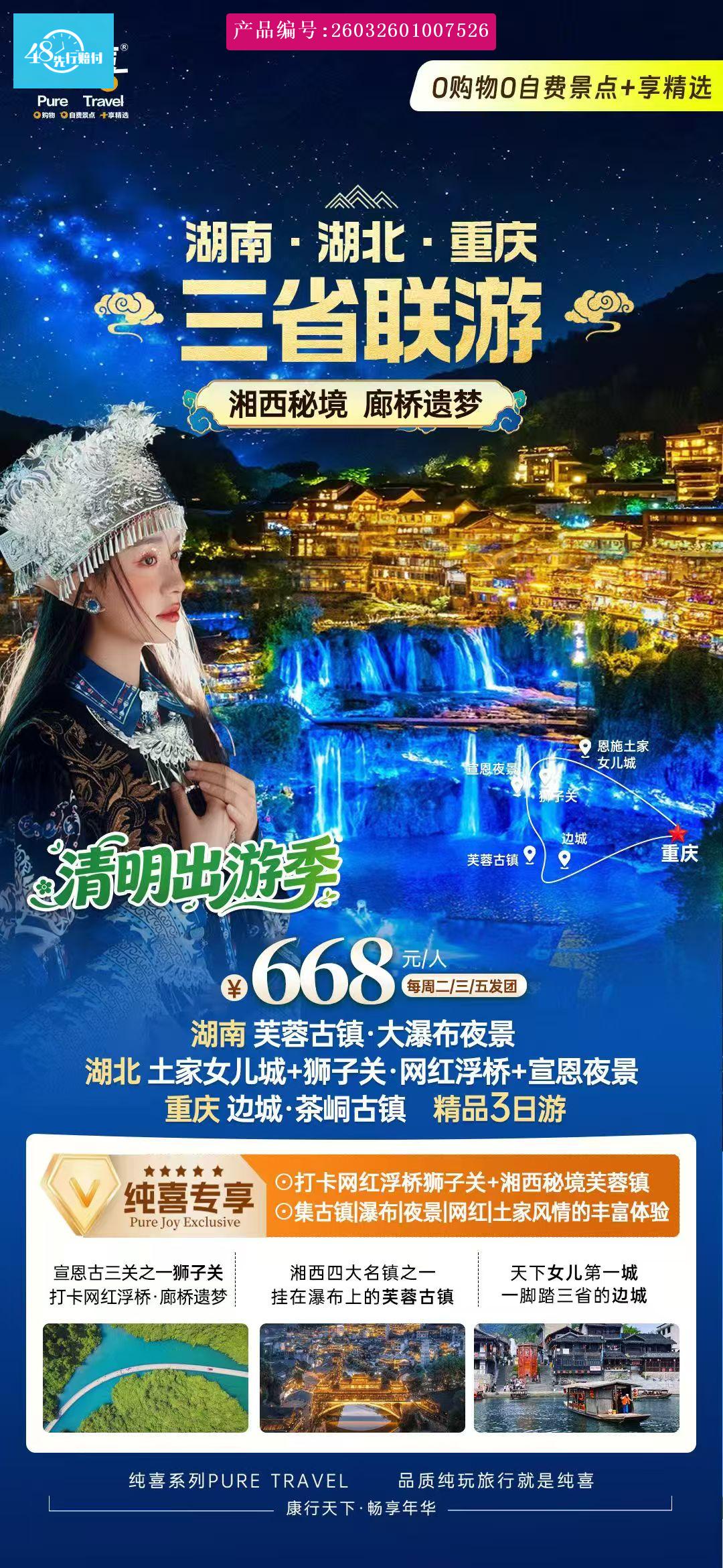 [p]交通:全程旅游资质车辆(一人一正座、根据人数定车型,按新交规儿童(含 2 岁以下) [br] [/p] [p]均需占座) [br] [/p] [p]门票:狮子关大门票、芙蓉古镇环保车+游船进出+芙蓉古镇大门票;土家女儿城、 [br] [/p] [p]边城、仙山贡水无门票(不游览无任何退费) [br] [/p] [p](所有游客出游请携带合法有效身份证原件,出团前一天 17:00 前确认游客信息,确认后不 [br] [/p] [p]可更改。此行程为综合打包价,门票按折扣成本价核算,故老年、学生、教师、军官等证件 [br] [/p] [p]不再重复享受优惠,所有优惠证无退费。) [br] [/p] [p]用餐:赠送 2 早餐(酒店所含早餐及赠送用餐不用不退,儿童不含住宿早餐自理。行程 [br] [/p] [p]内用餐顺序均为参考,实际以导游安排为准,但不影响包含内容及数量。) [br] [/p] [p]导服:具有合法资质持证导游。(导服费:10 元/人/团) [br] [/p] [p]住宿:入住 2 人间或大床房(散拼团根据游客报名时合同约定住宿标准安排,如产生单 [br] [/p] [p]男单女,我社有权安排拼房或三人间或加床,若无法安排,游客需自补单房差,请 [br] [/p] [p]谅解。请游客务必带上身份证原件,未成年人请带户口正页方可入住登记) [br] [/p] [p] [br] [/p]