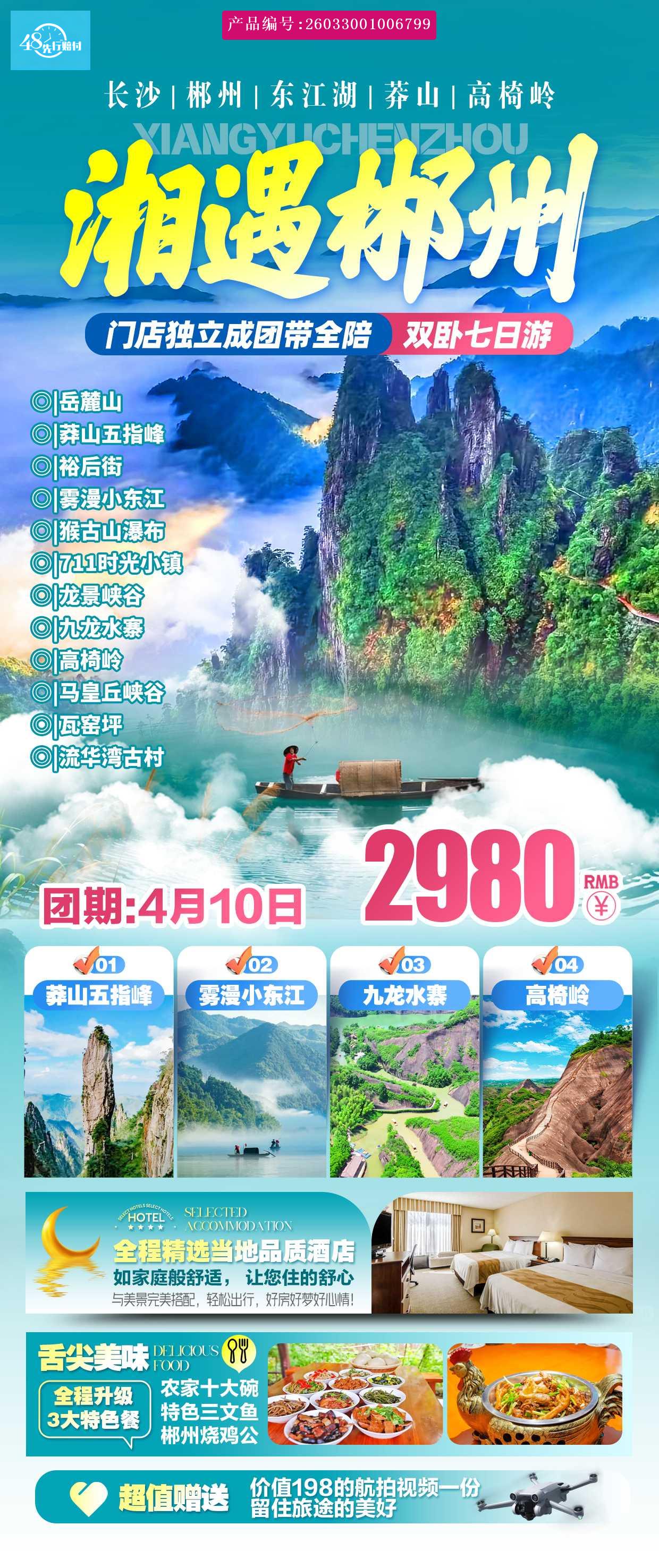 [p]●门票: 行程中所列景点首道大门票 (岳麓山环保车40元/人+五指峰垂直电梯往返80元/人+倒影池垂直电梯 10元/人+五指峰含索道环保车+东江湖 A 线+九龙水寨单竹筏); [/p] [p]●住房: 全程 4 晚连住当地网评三钻酒店; [br] [/p] [p]●用车: 当地正规旅游车; [br] [/p] [p]●用餐: 行程所列餐(4 早 8正);正餐 50元/人:特色餐导游根据时间合理安排。10 人一桌 9 菜一汤,不含酒水, 若客人自动放弃用餐, 费用均不退; [br] [/p] [p]●导游: 优秀国证导游服务; [br] [/p] [p]●大交通: 北京-长沙往返火车硬卧; [br] [/p] [p]●儿童标准: 1.2 米以下儿童仅含当地车位、导服和半餐, 其余均不含; [br] [/p] [p]备注: 导游可根据实际情况灵活调整行程 [br] [/p] [p]本产品为打包产品持有军官证、残疾证或老年证, 学生证等证件的客人均无任何优惠退费; [br] [/p] [p] [br] [/p]