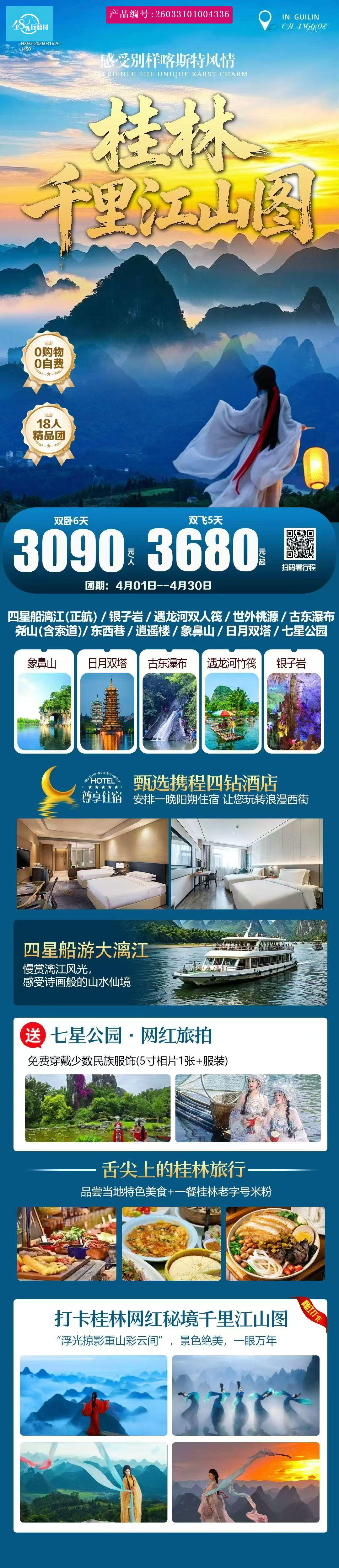 旅游交通: 北京桂林往返经济舱含税,行程内安排当地专属用车费用(除部分特殊路段因当地规定及安全考量,则依规定派遣小型车); [p]住宿标准: 全程携程四钻酒店(我社不提供自然单间,如出现单人由旅行社调整标间内加床或客人自行补足房差) [/p] [p]景点门票: 景点第一大门票(不含景区电瓶车及自理项目;赠送项目,如遇不可抗拒因素无法成行,门票不退); [/p] [p]用餐标准: 全程4早1正+1米粉餐+1船餐(正餐40元/人/正,豪华米粉餐,)正餐10人一桌8菜1汤,如人数不足将酌情减少菜量,若用餐人数不足8人,导游现退餐费;早餐在酒店为赠送,不占床无早餐)。若自愿放弃用餐,不退费用;若特色餐开餐人数不足则安排同等价值的退餐。 [/p] [p]购物: 市民超市不算店; [/p] [p]导游服务:当地中文导游讲解服务(不足8人提供导游兼职司机服务); [/p] [p]儿童费用: 1.4米以下。儿童价格仅包含当地旅游车位费、导游服务费、半价正餐餐费(不占酒店床位不含早餐不含门票、超高自理) [/p] [p]保险服务:已购买桂林旅行社责任险,确保游客安全保障; [/p]