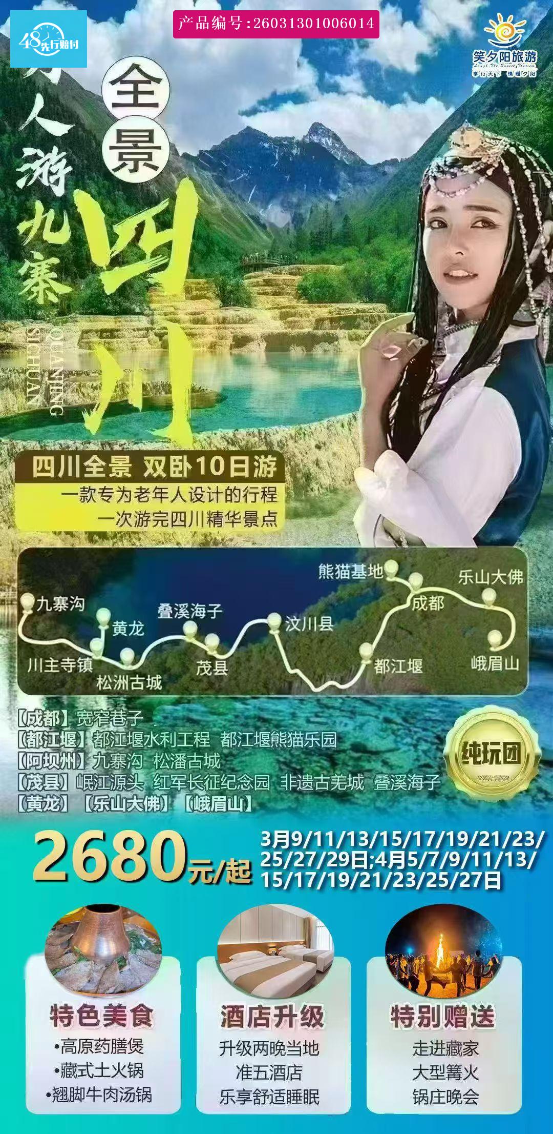 [p]服务标准及报价 本报价不提供发票 交通:出发地-成都往返硬卧,往返空调旅游车保证每人一座 不含景区交通(电瓶车)餐饮:7早9正 十人一桌正餐八菜一汤(人数不合适 合理安排菜量)住宿:精选当地舒适性商务标间 [br] [/p] [p]成 都:蜀俊 龙运花园 茉莉花开 友纳克 瑞悦南庭 福兴酒店 顶尚印象 或同级 [br] [/p] [p]九寨沟:拉姆拉错 结缘酒店 翠海云居 澜庭别院 藏宫阁 扎西德勒 格桑云朵 或同级 [br] [/p] [p]川主寺:黄龙宾馆 川主花园 圣地宾馆 雅仕酒店 富贵林 祥云迷尚 万福锦华 或同级 [br] [/p] [p]茂 县 :避暑山庄 新月宾馆 凯越酒店 绿岸源 云顶乡居 西羌度假村 宜耘 或同级 [br] [/p] [p]峨眉山:忆家 圣象酒店 东辉酒店 万年宾馆 桂馨园 涂窝 秀园 朋悦 或同级 [br] [/p]备注:同等星级酒店价格也有不同,游客如指定酒店,则按指定酒店另行核算价格;旅游旺季期间,如遇行程中酒店房满,将安排不低于以上档次的酒店;酒店定时供应热水、具有独立卫生间等,甘南相关服务及设施较城市标准略差一点,若参团人数为单数或单男单女的游客,我社协调拼房,如不能拼房则客人补单房差或安排加床。 导服:持全国导游资格证优秀导游服务。小孩:3-12岁,只含旅游车位费及餐费;产生门票及其他费用由客人自理,1.2米以下儿童免门票,但需大人带领进入景区。