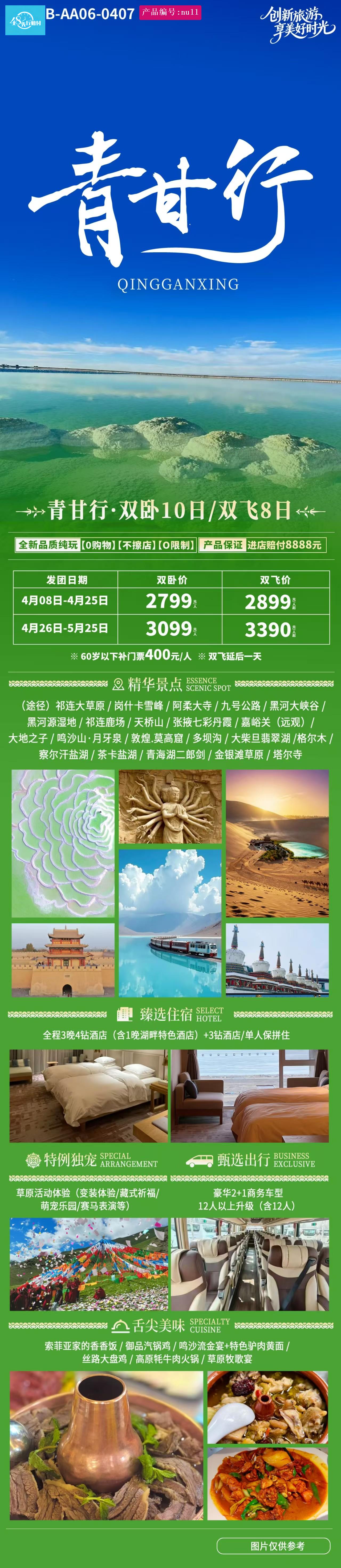大交通北京兰州往返火车硬卧门票含首道景区大门票,会根据当地实际情况在保证游览时间,景点数量不变的情况下,对行程做相应调整,感谢您的配合与支持。住宿全程3晚四钻酒店(含1晚特色湖畔)+4晚三钻。每人一床位。因西北条件有限,酒店热水分时段供应,部分酒店无空调、带独立卫生间。我社不提供自然单间、单人报名,我公司安排拼房,如游客要求一个人住需补房差,单人带小孩也需补房差,客人自愿放弃住宿、费用不退。如遇满房,我社有权调整至同等级酒店;青海湖、格尔木、茶卡镇当地旅游环境影响,住宿条件有限,敬请理解。青海段酒店无空调,请悉知!用餐含7早6正餐(不含酒水),正餐八菜一汤不含酒水(10人/桌);餐厅将根据每桌实际人数,对菜品数量进行相应增减。若客人不享用早餐或正餐,费用不退。(6个正餐均为特色餐)用车行程用车12人以上升级2+1头等舱商务车,保证一人一正座。12人以下根据人数安排用车根据实际人数选用空调旅游车,保证一人一个正座;接送不含导游导游专职中文导游服务(获得旅游局认可的导游资格证书)。保险含旅行社责任险购物店0购物店(景区内购物店不在购物店范围之内)儿童按儿童报名,仅含旅游目的地旅游车车位费、机场/火车站接送费、正餐半餐费用及导游服务费;不含门票、酒店床位费及酒店早餐,产生需自理;