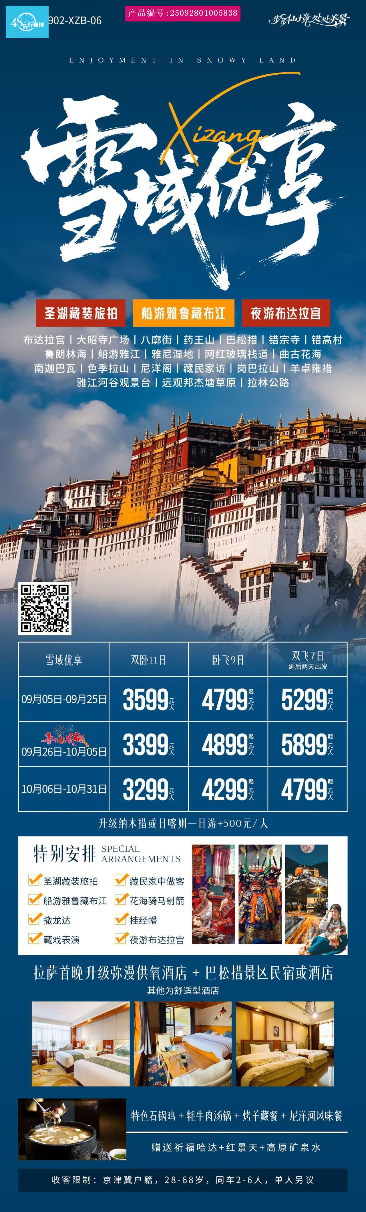 去程:北京-拉萨硬卧火车票;回程:拉萨-北京经济舱。回程航班为经停/转机,实际以出票为准,含基建税(火车上餐食自理,不保证铺位、车厢及连号要求。由于西藏地区的特殊性,旺季时火车票可能会出现西宁或其他城市中转的情况,请您谅解。机票一经出票不得退改签。航班起飞为当天,落地时间过凌晨的均视为当天)。拉萨首晚升级弥漫供氧酒店 + 巴松措景区民宿或酒店 + 精选舒适型酒店双人标准间。我社不提供自然单间,如出现单男单女,我社有权根据实际情况安排三人间、拼住或由客人补单房差,加床有可能为钢丝床。因西藏地区属于偏远地区,条件有限,酒店限时供应热水,为了环保,西藏各大酒店都使用太阳能(太阳能一般在使用热水时,将出水口打开一段时间,排出管道中的凉水)酒店房间一般无空调,酒店可提供加棉被和电热毯服务,如有需要可直接联系酒店前台。酒店条件与内地有差距,请客人有心理准备。请您注意保暖以防感冒。6早10正,早餐为酒店含早(不吃不退),正餐25元/人/餐,八菜一汤,十人一桌(人数不足菜量酌减)不含酒水,以川菜为主,如有忌口者可自备食物;行程中团队用餐,客人自愿放弃,费用不退。行程内所列景点首道大门票(赠送景点如因自身原因和天气自然灾害原因不能参观费用不退)。因参观景点需要,请游客随身带好身份证原件。游览景点(景点首道大门票),如遇景区门票政策性上调,请客人现补差价;如客人自愿放弃行程中景点,费用不退;此行程已按旅行社优惠门票核算,报价均为打包优惠价,持各种特殊证件(老年证、学生证、记者证、军官证、导游证等)均不再享受任何优惠。未产生的门票也无任何退费。当地旅游车,车型根据此团人数而定,保证每人1个正座,若客人自行放弃当日行程,车费不予退还。因西藏特殊气候条件,旅游车辆均不能开空调设施,因高原长时间行车,途中车辆负荷较大,可能会遇到汽车抛锚并影响行程的情况,旅行社对此会迅速做出补救措施,请游客做好心理准备。当地导游讲解服务(接站与送站为工作人员非导游),因西藏旅游业处于起步发展阶段,当地导游服务无法与内地导游相比较,请游客谅解。
