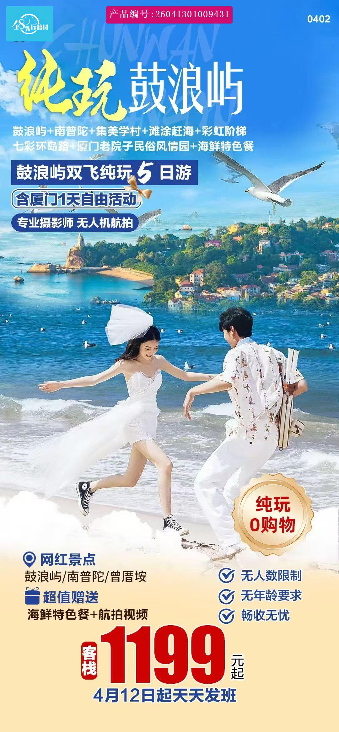 [p]1. 住宿:全程4晚,以两人一房为标准、酒店早餐 [br] [/p] [p]参考酒店: [br] [/p] [p]鼓浪屿客栈参考酒店:(海屿之恋、名屿之恋、海角之恋、海之恋、日光别墅、阳光壹佰、微热爱屿、微热伴山海、微热海庭假日酒店、微热阳山尊府、微热别样、微热未闻花名或同级别客栈) [br] [/p] [p]鼓浪屿准四参考:磐诺、六悦、罗马假日、雅苑、梵汐、琴笙或同级 [br] [/p] [p]近海民宿客栈:海与阳光、喜又、安娜系列、境初半茶、境初花舍(电梯房)、境初花汐、境初予闲、小鱼贝、恋海时光或其他同级别客栈,以实际安排为准 [br] [/p] [p]两钻参考酒店:润祥隆、金佰利、华庭、家美家、厦欣花园、金凯、渼夜或同级别酒店或其他同等级,以实际安排为准 [br] [/p] [p]三钻参考酒店:养元、艾思顿酒店(吕厝地铁站店,湖里大道店)、凯斯特、美途、天成酒店、维洛拉大酒店或同级别酒店,以实际安排为准 [br] [/p] [p]普通四钻参考酒店:亨龙东渡店,亨龙花园高级房、柏纳湖里大道店、君帝湾酒店、格林东方(明发广场店)或其他同等级酒店,以实际安排为准 [br] [/p] [p]豪华四钻参考酒店:途客中国、亨龙花园酒店豪华房、梅园酒店、庐山智选或其他同等级酒店,以实际安排为准 [br] [/p] [p]五钻参考酒店:万佳国际大酒店、明发国际大酒店、湖里颐豪酒店、伟尔酒店、翔鹭国际大酒店、或其他同级别酒店,以实际安排为准 [br] [/p] [p]2.用餐:行程注明所含的4个早餐,1个正餐,为海鲜特色餐,(八菜一汤,十人一桌,人数不足10人则酌情减少菜数或者更换,不吃不退,酒店含早,不用不退) [br] [/p] [p]3.用车:空调旅游车(注意:因地域限制,用车皆为套车,有可能会出现人换车,等车30分钟以内的现象均属正常,望客人谅解)。 [br] [/p] [p]4.保险:含旅行社责任险。 [br] [/p] [p]5.导游:行程中所列参观游览过程中,地方专职中文导游服务及景区讲解员 [br] [/p]6.门票:行程中所含的首道门票:因鼓浪屿船票为网络订票,需团进团出,且取消不退费,船票进出港时间以实际购到票为准。 及鼓浪屿实行人数限制,轮渡票需提前订票,订票后无法补差价补票。小孩身高如超过1.4米,需提前通知我方买全票轮渡票,如因客人信息传达错误引起无法登船等后果由客人自行负责。轮渡票临时补票无法保证与我社预订的班次一致(其他为免费对外开放或外观景点或另付费项目)。鼓浪屿国有景区日光岩、菽庄花园等免费期间需要提前预约,最终以预约结果为准,预约成功与否,不加不退任何费用。儿童:1.2米以下小孩,早餐自理,只含正餐半价和车费导游费