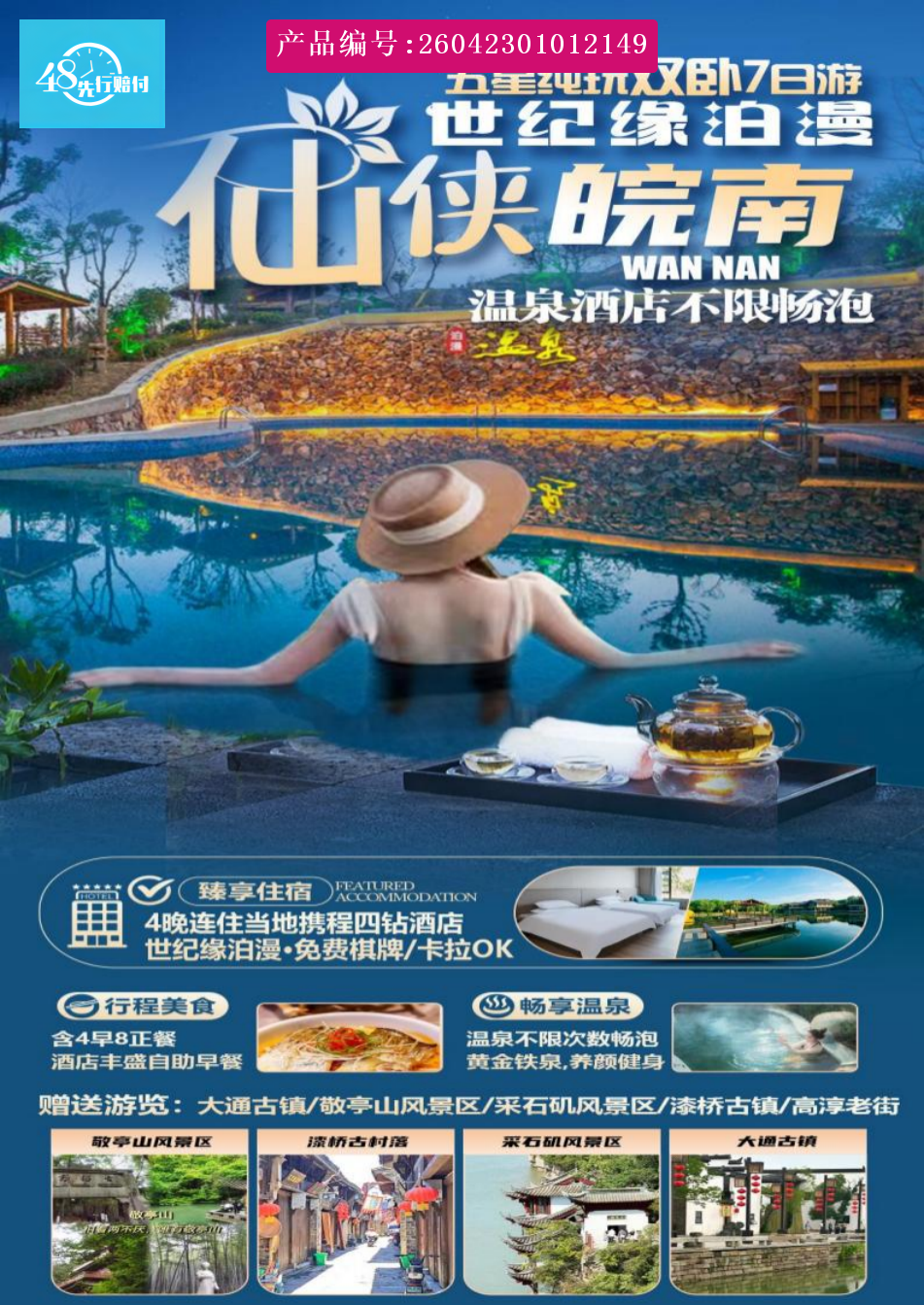 [p]1 、住宿标准:四晚连住不挪窝 [br] [/p] [p] [br] [/p] [p] [br] [/p] [p](含空调洗漱用品 ,洗漱用品入住当天提供,入住期间不更换,介意的顾客请自备) [br] [/p] [p]2 、用餐标准:全程 4 早 9 正餐【特别安排品尝当地徽派特色菜品,挑战味蕾~】 [br] [/p] [p] 行程所含用餐,不吃不退,团队用餐安排前后顺序导游有权调整,数量不减。 [br] [/p] [p]3、用车标准:当地交通为空调旅游巴士,保证一人一座 [br] [/p] [p]4 、服务标准:全程专业中文导游服务; [br] [/p] [p]5 、门票:行程已含景点首道大门票; [br] [/p](本行程仅仅只含景区大门票 ,景区内小景点小门票以及所有小交通门票及景区二销项目全部自理;本产品门票为团队惠联票,持老证 ,军官证,学生证等优惠证件的人群均不再享受重复优惠! [p] 6 、大交通:北京-合肥,往返火车硬卧; [/p]