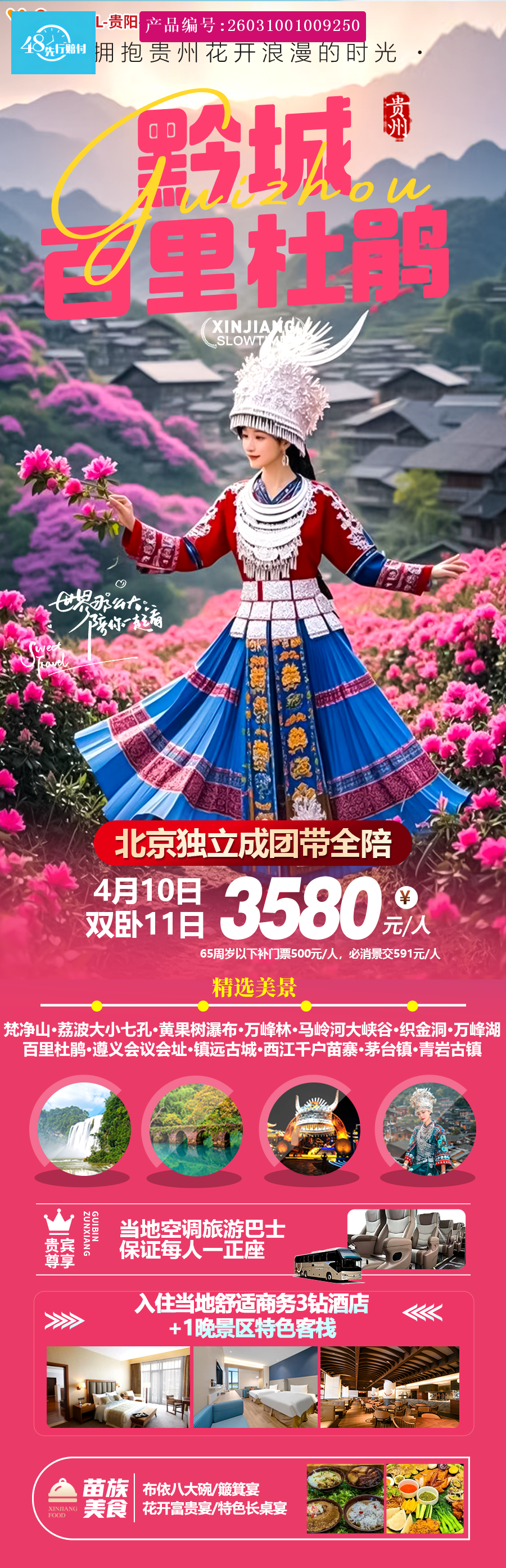 [p]1、交通 :当地空调旅游巴士,保证每人一正座; [br] [/p] [p]2、住宿 :全程7晚当地网评3钻及以上酒店+1晚景区特色客栈; [br] [/p] [p]3、用餐 :全程8早餐6正餐,餐标30元/人,行程中备注不含用餐敬请自理,如因自身原因放弃用餐餐费不退 [br] [/p] [p]4、门票 :景区大门票(65周岁以上含门票,不满65周岁补门票500元/人); [br] [/p] [p]5、儿童 :14周岁以下儿童游客团费当地只含正餐半餐费(不含早餐)、车位费导服费,不含其他费用,若产 [br] [/p] [p]生其他费用一律当地现付!景点验票标准严格,若因儿童超高产生各种的费用 ,敬请家长在当地自理! [br] [/p] [p]6、保险 :包含旅行社责任险,不含旅游意外险、如因交通事故造成游客人身伤害及财产损失 ,按照《中华人 [br] [/p] [p]民共和国道路交通事故处理办法》进行赔偿 ,解释权及理赔权由保险公司负责(注 :保险公司对2岁以下和 [br] [/p] [p]89岁以上老年人不受理,所以不收这个年龄段客人 ,69-89岁保额减半 ,需签免责协议 ,老人、小孩必须有 [br] [/p] [p]家人陪同 ,另身体有疾病的 ,妊娠期的请不要参加旅行团(请游客或组团门市出团前购买旅游意外险,注: [br] [/p] [p]若未购买旅游意外险的游客或组团门市,责任自负,敬请知悉!) [br] [/p] [p]7、导游 :优秀中文导游贴心服务 ( 10人及以下不含导游) 。 [br] [/p] [p]8、购物 :真纯玩0购物,无强制消费 [br] [/p] [p]9、儿童价标准 : 年龄2 ~ 14周岁(包含车位/半餐/导服,餐费不吃不退,不含:酒店早餐/床位/门票/观光车 [br] [/p]/电瓶车/索道/游船费等/赠送项目,不含景区门票及小交通 ),产生的其它费用敬请自理;