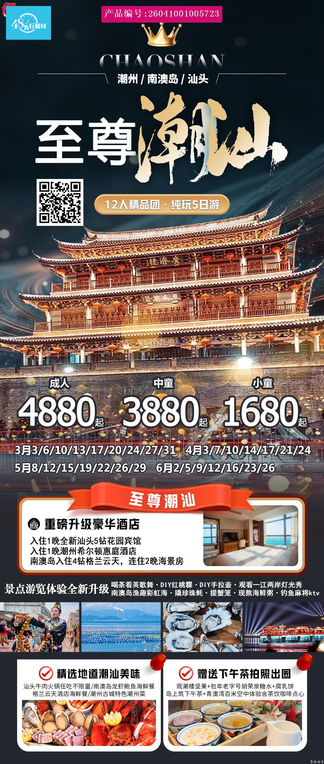 [p]1、住宿:入住1晚汕头5钻酒店+1晚潮州希尔顿品牌惠庭酒店+2晚南澳格兰云天酒店 [br] [/p] [p]【产生单房差请客人自理】 [br] [/p] [p]参考酒店:汕头花园宾馆、潮州希尔顿惠庭酒店、南澳岛格兰云天海景房 [br] [/p] [p]2、用餐:全程含4个酒店自助早、4个社会餐厅正餐(餐标80元—100元/人/餐) [br] [/p] [p]3、用车:指定GPS安全监控系统,空调旅游巴士,保证每人1正座。 [br] [/p] [p]4、导游:优秀持证专业导游。 [br] [/p]5、门票:报价包含景点首道门票(不含景区内设自费项目) [p]6、往返机票(团队票) [/p]