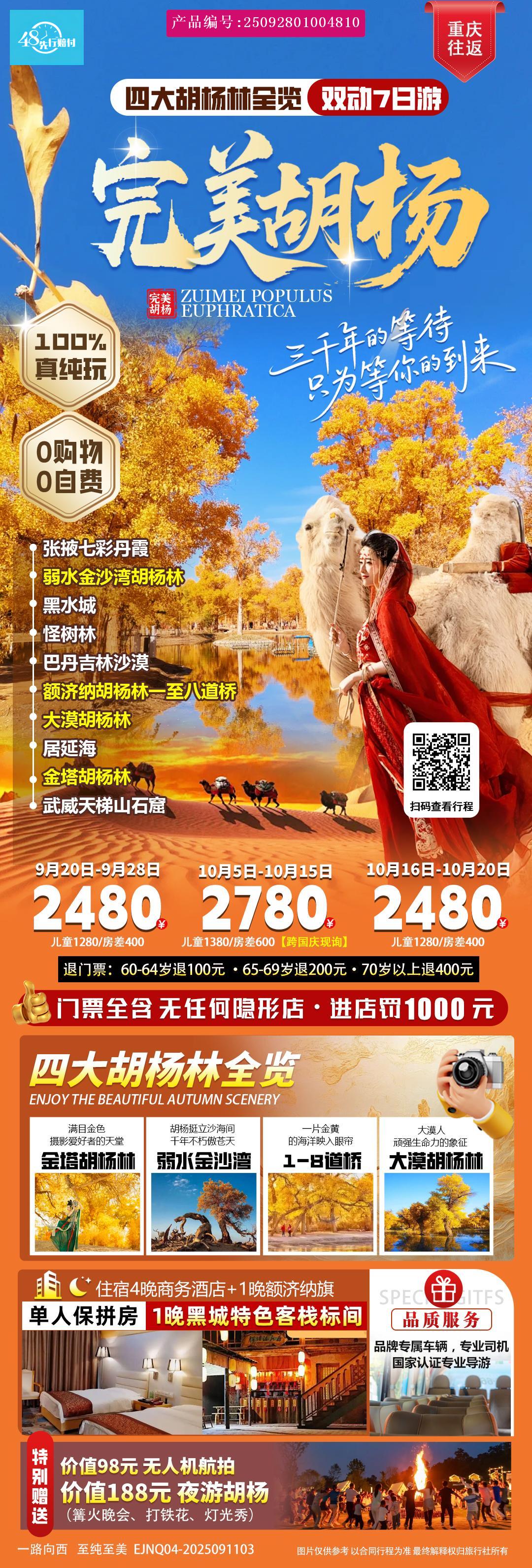 [p]1、交通工具:各地/兰州/各地大交通,当地正规空调旅游车(车型不定,确保一人一正座)。(备注:每团只安排一次接送站服务!最终以人数最多的车次时间为准!请告知游客) [br] [/p] [p]交通备注:由于是散客行程,不接受火车铺位不在一个车厢、铺位不满意以及对航班时间不满意的投诉。由于国内部分航空公司变成廉价航空,无免费行李托运,产生的行李托运费用自理。 [br] [/p] [p]2、住宿标准:指定酒店双人标间/民宿/客栈(我社在行程中只提供标准双人间,若出现单男单女,客人请自行补足标准房差)。酒店含彩电、独卫等,具体安排按实际住的宾馆为准。参考酒店(包含但不限于): [br] [/p] [p]兰州:云溪.悦、坤逸精品/月光、农垦、瑞达、如家商旅、非凡凯宾、凯达、新胜利、维也纳3好/智好、维也纳国际、星程、飞天美居、甄美、金骆驼国际、喆啡、蘭莓精品、尚美居、尚客优品、萃英酒店、澜海温泉、速八精选、宜曼酒店、东影花园、途窝、华辰、丽呈,宜必思,全季,安宁锦江之星、宜心恩、西岸酒店、尚美居、平凉大厦、麦积山酒店、欧资尚品、星美酒店、H酒店、丽怡、帮磁酒店、麦积、西客站维也纳、虹运宾馆、福成假日酒店、福源尚品、君兰素柏·云酒店、伊顿尚品、虹云宾馆、兰州职工大厦、宝迪酒店公寓、新时代一品、澜悦居、天源9号大酒店、海谊尚品、河畔明珠、金川集团兰州宾馆、新德丽宾馆、锦江之星品尚酒店、河湾丽景酒店、金牛宾馆、时代金典、悦美居兰飞酒店、宜居宜行酒店、远城岳庭酒店、和悦楼宾馆、丝源观景、潮漫、家盛酒店、万达TOWO、安宁富源尚品、正宁路途窝上品、宜必思雁滩店、新区五悦悦心、西客站帮磁、宿适莱特、澜海温泉、金岛酒店、宜心恩、庆阳大厦、三新怡家、麦积山宾馆、瑞达、长城宾馆、五悦悦心、宿适莱特、金岛酒店、等或同级。华联宾馆、陇鑫大厦、丽呈酒店、丽呈睿轩、铂苑酒店、黄河美居、华辰大厦、亚朵酒店、维也纳、黄河美居、老街噗雁、中山宾馆、香悦四季酒店、宇阳酒店、民航云美、金轮宾馆、凡里而美、戴斯温德姆、麗枫、维也纳国际、智选假日、如意鎏璟、假日酒店、TOWO中鑫国际、蘭博梁山、康铂酒店、TOWO艺术酒店、奥美得国际酒店、坤逸精品(安宁吾悦)万盛子文、温商长江、飞天酒店、甘肃国际大、天成温泉、丽怡酒店、秋果酒店、黄河美华、海虹假日、凯里亚德、长信国际、万寿宫、白云宾馆、安盛国际、希尔顿、世家轻奢、晋坤酒店、天庆温泉、兰苑宾馆、安课慈、亚欧、云和夜泊、凡里而美、瑰玉酒店、酒钢大厦、逸扉酒店、铂苑酒店、黄河美居、美豪丽质、美居酒店、欧资国际、美仑国际、金地名庭等或同级 [br] [/p] [p]张掖:邮电宾馆、凯利、顺祥、玉水苑、临松、旭峰宾馆、宜尚酒店、尚景智能健康酒店、尚景品美酒店、建城智选酒店、建城优选酒店、建诚品荟酒店、派派酒店、佰仟大酒店、临松酒店、崇文酒店、天润金座天润银座、柏菲酒店、彩虹湾酒店凯艺酒店、艾扉酒店、途客邻酒店、如家精选、顺祥酒店、兰庭嘉朋、忆家精品、佰仟酒店、石头城、荣泰酒店、宜必思、簏风、天鸿酒店、金源、丹霞新乐大酒店、云霞故里智能、星程、小辣椒、北辰酒店、宇辰酒店、丝路迎宾、归园田居、依山新境、春雨宾馆、辰业酒店、曼舟酒店、骏晖、华侨、丹霞鼎盛酒店、盛华文化、中祁国际、途客尚邻等或同级。丹霞明珠、摄影国际、嘉亨大酒店、山水源、金阳饭店、尚景国际、希尔顿欢朋、华辰大酒店、璞悦酒店、金蒂梵尔、祁连明珠、品尊国际、润湖假日酒店、千禧丝路、鼎和国际、西遇国际、铭嘉乐国际、天薇国际、都城假日、丝路阳光、君颐臻品、丝路瑞华、锐驰国际、钻石国际、和颐至尚、恒达丽景、绿洲假日、祁连山大酒店、凯瑞酒店、铭邦国际、御景国际、新城大酒店、富来登温泉假日、宜尚、钻石国际、凯瑞、建诚假日、彩虹湾国际等或同级额济酒店:金悦宾馆、天赐宾馆、刘五子商行客房、大漠胡杨观景酒店、新拜情酒店、恒悦商务酒店、鑫港湾宾馆路桥宾馆、广佳商务宾馆、富华宾馆、喜鹊商务宾馆、龙行酒店、曙光宾馆、蒙苑宾馆、豪泰宾馆、尚客优宾馆、苏海宾馆、杰隆宾馆、额济铂锐酒店、蓝欣酒店、叶子主题酒店、半夏时光、朔杨宾馆、雅顿商务酒店、福瑞斯特酒店、香墨宾馆、华驿精选、龙顺假日、丽枫精品、云途宾馆、曼舟商务宾馆、安然酒店、鑫辉宾馆、浩洋商务、金林宾馆、胡杨宾馆、山河酒店、启元宾馆、远方宾馆、微利宾馆、铁路宾馆、奥兴宾馆、美佳宾馆、欣建宾馆、尚景酒店、如家云上四季、尚景酒店、金色圣殿丽枫精品额济商务半夏时光、龙顺源华建星辰、金羽酒店德创、如家华裔精选云途商务、嘉豪、聚贤宾馆、胡杨酒店、启元、悦华商务、万豪商务、山和酒店、金龙宾馆、曼舟商务、云尚宾馆、栖悦宾馆、赫利宾馆、琴华宾馆、天意宾馆、栀子宾馆、欣建龙源宾馆、多米商务路兴华意夏朵大唐家庭、漠上宾馆、诚和信安然鹏飞塞北胡杨琴宾馆、悦海宾馆、春来宾馆鑫辉欣悦宾馆、蒙苑宾馆、胡杨琴宾馆、宏伟宾馆、雅轩宾馆、悠然居、苏海宾馆等或同级。 [br] [/p] [p]嘉峪关:林苑大酒店、宏大、王朝酒店、宜好精选、星程酒店、维也