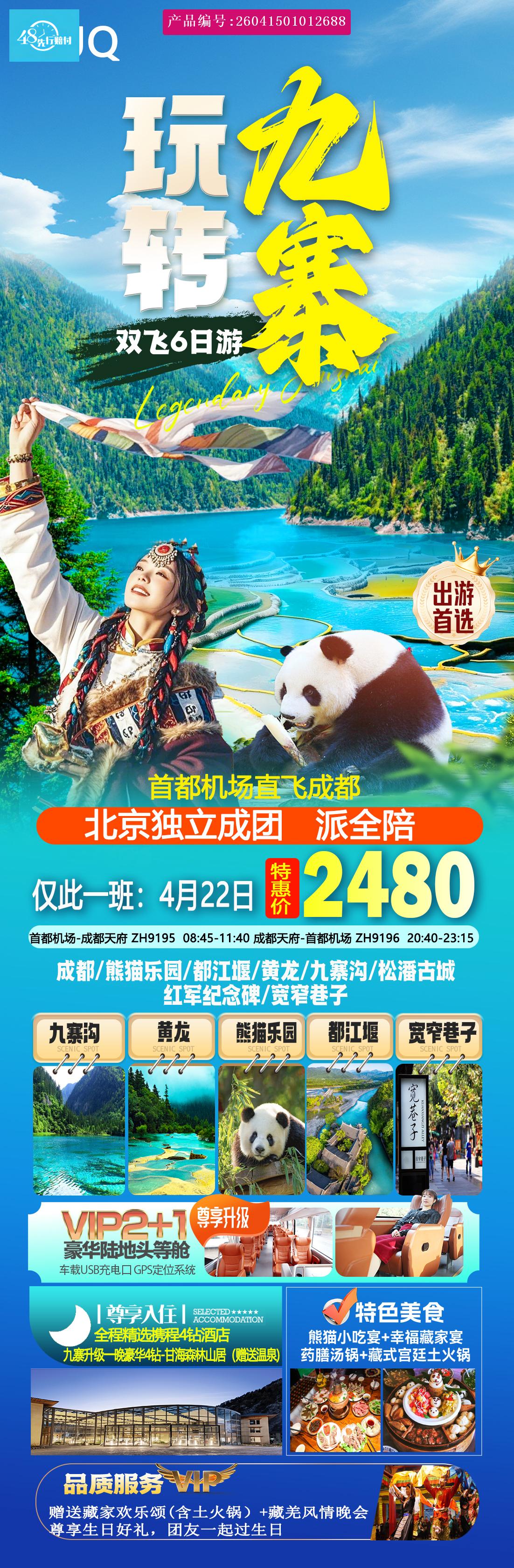 [p]【大交通】北京-成都往返经济舱机票及税(团队机票一经出票,不能退改签,必须按顺序使用,请知晓) [br] [/p] [p]【用车】成都接送站用车为普通旅游车; [br] [/p] [p]行程段采用豪华陆地头等舱,2+1保姆车宽大舒适,自带USB充电接口,可135°斜躺。(特别约定:如遇人力不可抗力因素导致原有交通无法完成原有旅游行程,进行绕路等额外增加交通费用需游客自理),空调限时开放,确保车况良好,司机服务态度好,确保一人一正座,不提供座位指定要求,沿线有限制速度及部分路段维修,易发生堵车,请自备干粮;为保证车辆制动性能,行车延途均需停车加水;所有自由活动期间及行程外均不含用车。 [br] [/p] [p]【门票】九寨沟景区门票,黄龙景区门票,此产品价格已为综合优惠打包价,任何优惠证件门票均不退还。(都江堰、熊猫乐园、特色藏寨、红军纪念碑,宽窄巷子、温泉为赠游景点,任何原因未去均不退还门票),特别说明,由于九寨黄龙属高原地区,如遇泥石流、塌方等原因导致行程改变,旅行社有权调整景点先后顺序。 [br] [/p] [p]【住宿】行程所列住宿地5晚住宿,每人1床位; [br] [/p] [p]精选携程四钻,2人以下单床位,必须补房差。3人以上可补房差亦可安排加床(加床为钢 [br] [/p] [p]丝床)以酒店提供为准,费用等同正常床位,不提供自然单间及拼房服务,亦不接受楼层及特殊房型指定, [br] [/p] [p]因计划用房,单房差请于出团前付清,九寨段酒店不提供一次性洗漱用品,限时提供热水。敬请理解! [br] [/p] [p]成都参考酒店 :月牙濠璟酒店/铁道/扉宿/万信/东芮/锦客或同级。 [br] [/p] [p]九寨参考酒店 :甘海森林山居或同级。 [br] [/p] [p] [br] [/p] [p]川主寺参考酒店 :龙钦云顶/祥瑞/仁天子/腾龙/嘉利尚雅/旭日仙阁/香谷弗舍/东干仓或同级 [br] [/p] [p]备注:如遇满房,我社有权调整至同等级酒店 [br] [/p] [p]【用餐】5早餐6正餐,行程所列“定制餐饮”为酒店提供增值赠送用餐,以酒店提供为准,不属于行程质量范围。特色餐为我社安排用餐,不含酒水。因整体餐费不以个人用餐与否减少,自愿放弃用餐无费用可退,敬请理解。九寨黄龙景区地处偏远,餐饮条件相对于大城市较差,请自备老干妈等佐食,含一餐藏式宫廷土火锅,不含沟内诺日朗自助餐。 [br] [/p] [p]【导游】行程内含优秀持证中文导游讲解服务,负责旅游者的日常组织安排,沿途讲解,问题处理;行程内导游会以同团大部分游客为照顾对象,如需按照自己意愿游览,或不按规定时间安排的,为避免同团其他旅游者造成不满,我社不作特殊安排。 [br] [/p] [p]【保险】旅行责任险、保险公司对3岁以下和70周岁以上承保,70周岁以上老人我社无法接待。特别说明:客人乘坐出发地至成都往返大交通当日、接送站期间以及所有自由活动时间均不在本次旅游意外险保障有效时限范围内,敬请注意! [br] [/p] [p]如因交通事故造成客人身体伤害,按照《中华人民共和国道路交通事故处理办法》进行赔偿。解释权及理赔权由保险公司负责。不含财产险,随身物品自行妥善保管。 [br] [/p] [p]【儿童】含中晚餐半餐、旅游车位,不含酒店早餐,产生其它费用敬请自理。九寨沟景区门车票实行全网实名预约购买制,景区现场不设人工现金购票窗口,身高超过1.2米/6岁以上小孩均需提前购票。 [br] [/p] [p] [br] [/p] [p]【赠送】:赠送:藏家欢乐颂(含藏式土火锅)+藏羌风情晚会; [br] [/p](注:行程所列赠送项目因任何原因不参加,费用一律不退,也不换等价项目)